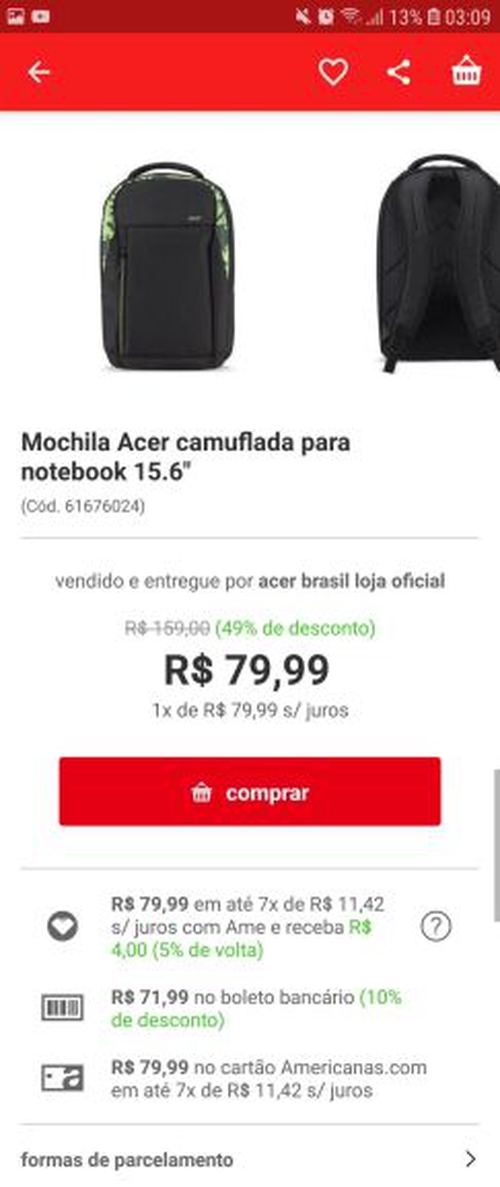 [50% OFF] [APP] Mochila Acer camuflada para notebook
