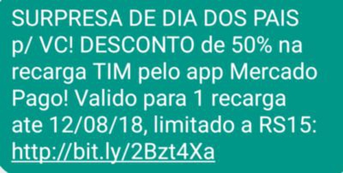 50%OFF na recarga TIM pelo app MERCADO PAGO