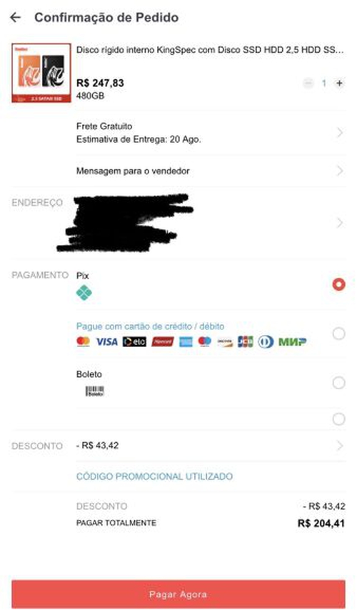 Comprei um agora por R$ 214 sem ser primeira compra