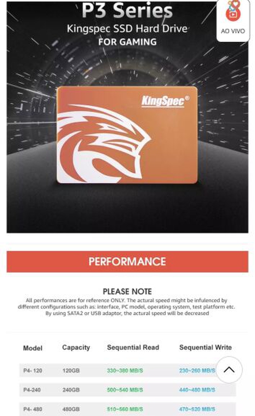 [54%OFF + Novos Usuários] SSD 480gb King | R$204