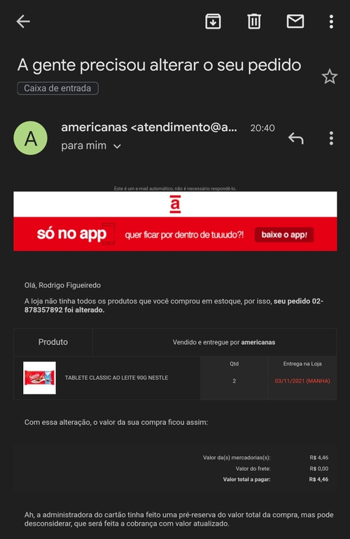 Promoção de ontem da garoto ao leite cancelaram hj pela manhã.