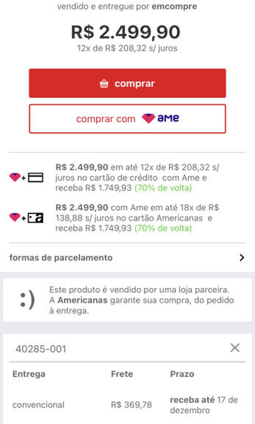 Paguei acho que uns R$1700 com 50% de cashback no AME.