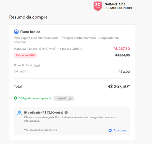 ( GARANTIA DE REEMBOLSO 100% 30 DIAS) só adicionar o cupom e escolher o plano 2 anos basico (sem aquele gerenciador de senha que todo navegador ja tem)