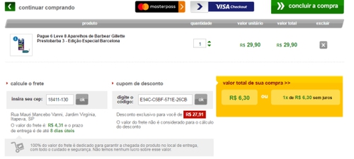 8 Aparelhos de Barbear Gillette Prestobarba POR 1,99 NO VISA CHECKOUT