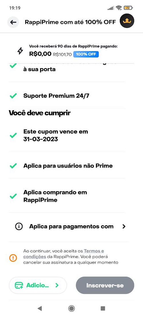 Peguei aqui, não se esqueçam de clicar em ajuda no rappi prime e cancelar a assinatura para não serem cobrabo ao final dos 3 meses, não se preocupem o prime plus ficara ativo até lá