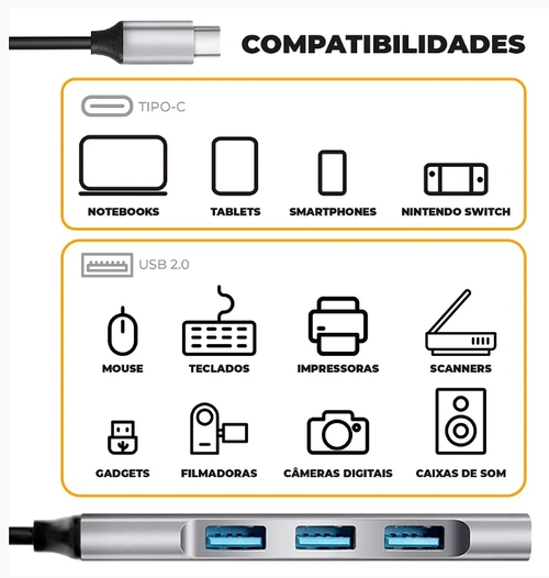 Adaptador Multifuncional Tipo C para Notebook 4 em 1 - Gshield