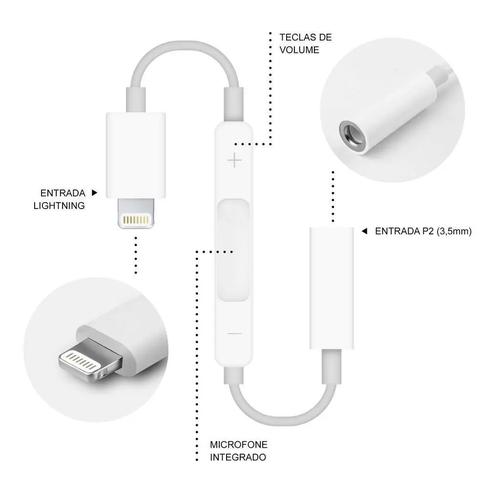 você consegue conectar seu aparelho, através do conector de áudio de 3,5mm, a qualquer dispositivo com entrada de Lightning