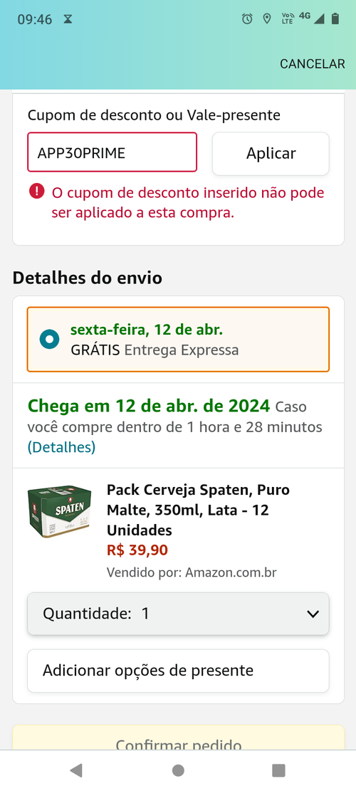 Não deu o cupom...