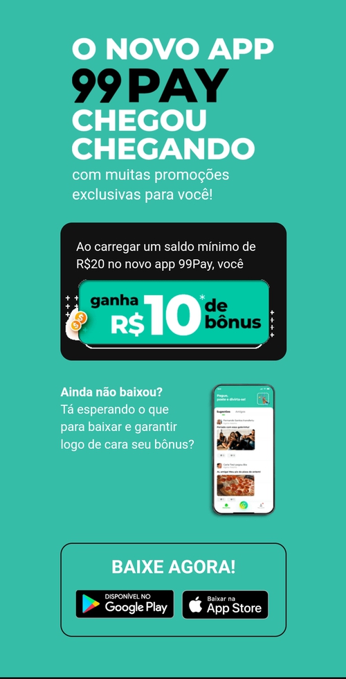 Adicione R$20 na sua carteira da 99Pay e ganhe R$10