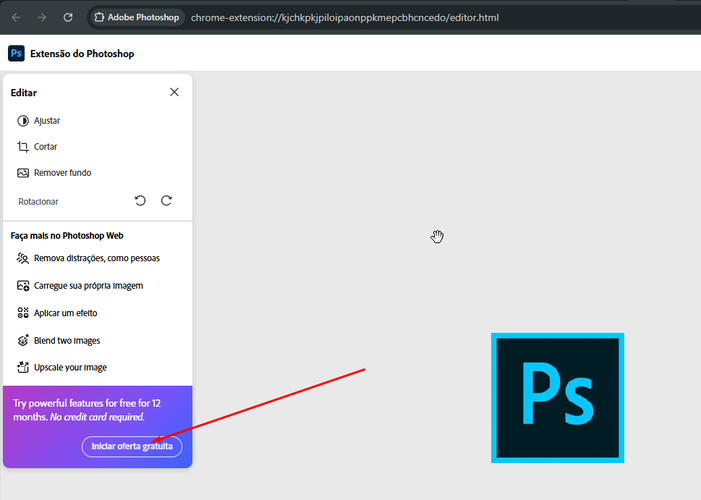 1 - Instale a extensão de navegador oficial do Adobe Photoshop