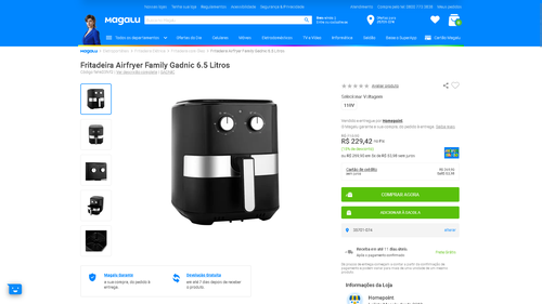 Airfryer Family Gadnic 6,5l 1700w Preta Antiaderente Airf0015a 110v