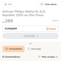 Airfryer Philips Walita XL 6,2L RapidAir 110V e 220V