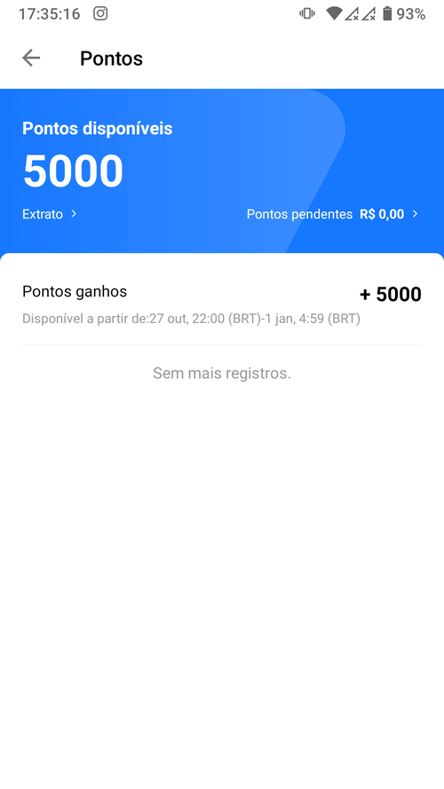 Depois de quase uma semana, até retirei o dinheiro.. E os 5000 pontos caíram...