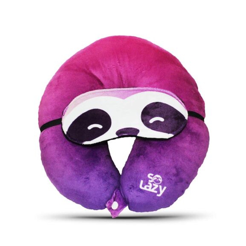 - A almofada fecha no pescoço, com botão, e o tapa olho tem um elástico aplicado que se ajusta ao tamanho do rosto;