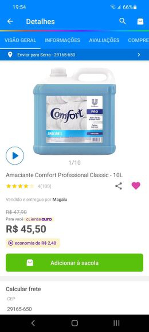 Confort 10 l por 45,90 cliente ouro