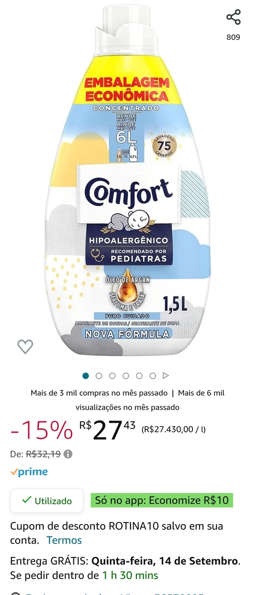 Amaciante Concentrado Comfort Puro Cuidado 1.5L