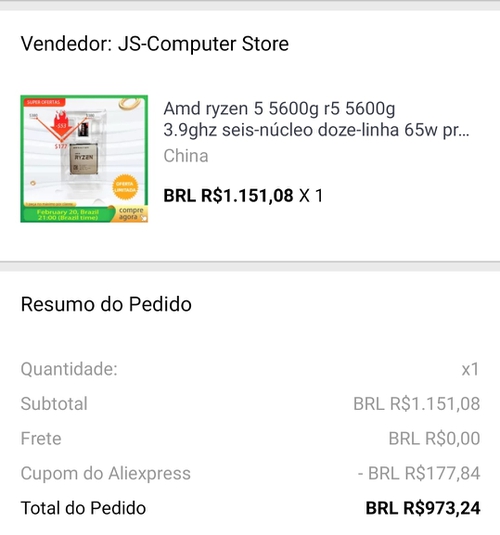 Pra quem não viu, o link daqui estava errado. O certo é esse aqui pt.aliexpress.com/item/1005003101729154....CN%22,%22sku_id%22:%2212000024094590231%22%7D&sourceType=560&spm=a2g0o.11810135.SecKillSuperdeals.2