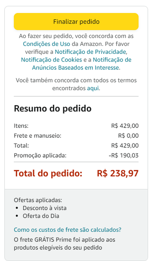 O desconto só aparece na etapa de pagamento selecionando Pix ou Boleto, beleza? Ah, e precisa ser assinante Amazon Prime.
