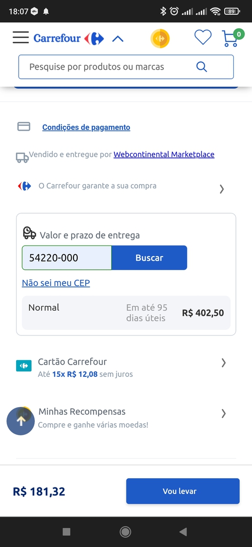 Valor do frete $24Sou cliente Carrefour e conformou pedido no App, Whatsapp e EmailQuase comprei pra colocar de enfeite e servir de relógio kkk ainda bem q acabou ainda estava pensando sobre kkk