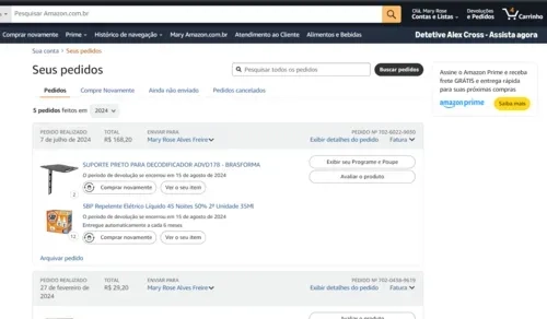 Essa conta está sem pedidos desde julho de 2024. Vou deixar o print dos últimos pedidos abaixo: