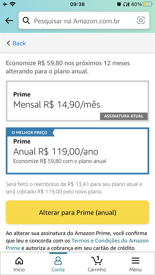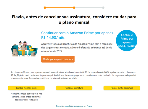 Que reajuste pesado. Não tem como tirar o Prime Vídeo e pagar menos? Nem assisto aquilo.
