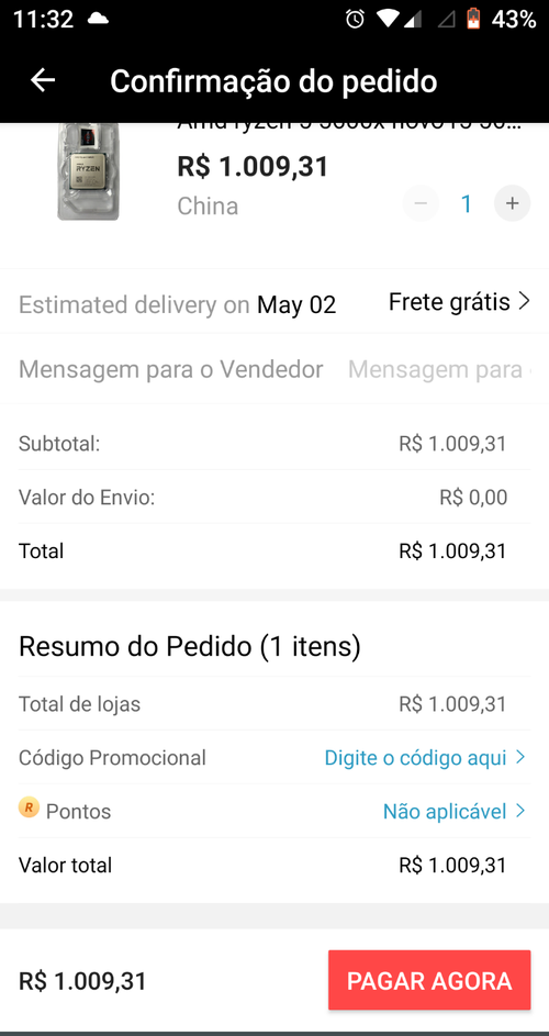 Acabei de pegar nesse exato momento 22:37 por 1009