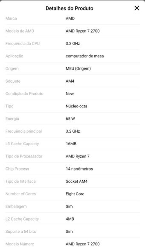 AMD Ryzen 7 2700 R7 2700 3.2 GHz Eight-Core | R$807
