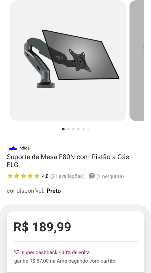 Valor final considerando cashback R$ 132,99Excelente suporte para monitor.