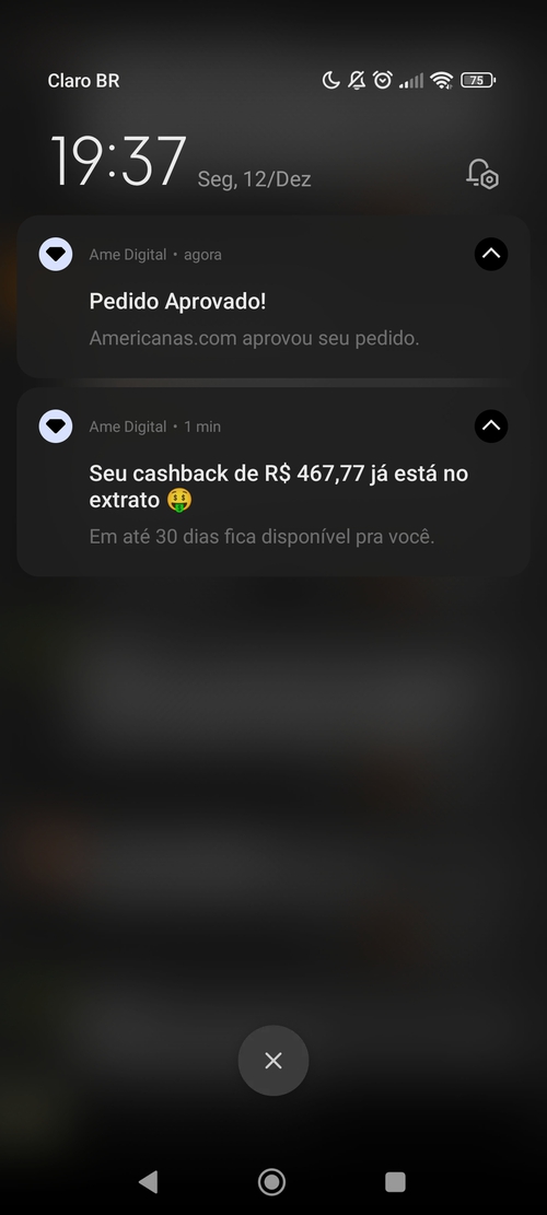AME pra mim não é chashback de verdade, cashback de verdade é o que vai pra minha conta bancária.