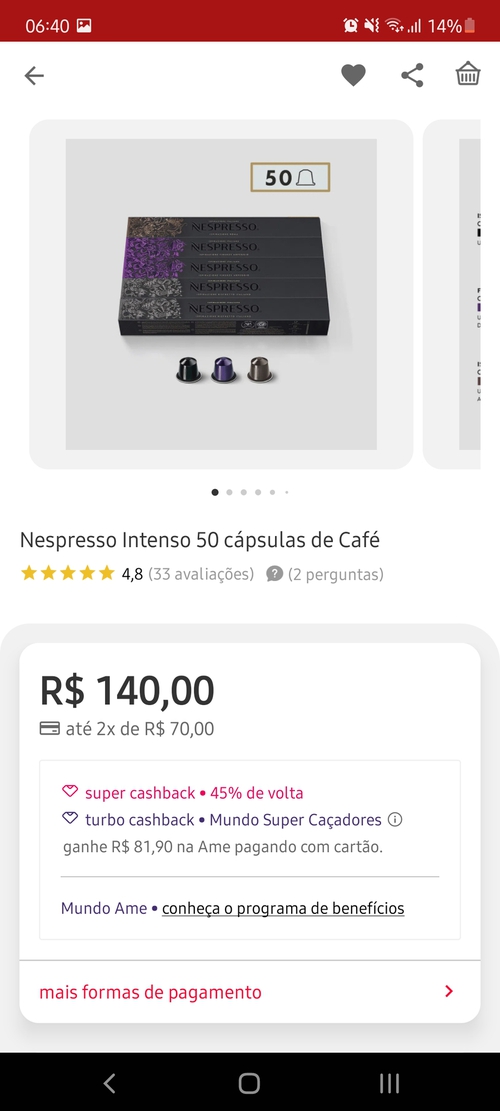Pagando por ame por aqui só aparece o Cashback de SC quando vai por saldo. Como alternativa pagando com o cartão direto no site Americanas aparece o Cashback completo