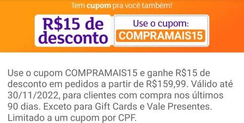 1° Cupom só pode ser aplicado para quem fez alguma compra na Shoptime nos últimos 90 dias.2° Para chegar nesse valor é necessário adicionar 2 unidades ( já que o cupom só é aplicado para valores acima de 159)3° Valor informado é equivalente a cada conjunto, porém como foi dito anteriormente, e necessário comprar duas unidades.