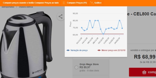 [Ame] Chaleira Elétrica Prime - CEL800 Inox Cadence - R$69 (ou R$48 com Ame)