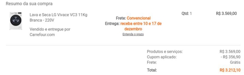 Total R$ 3179,87Compra feita usando cupom NOVO10 para clientes sem compras no últimos 12 meses.