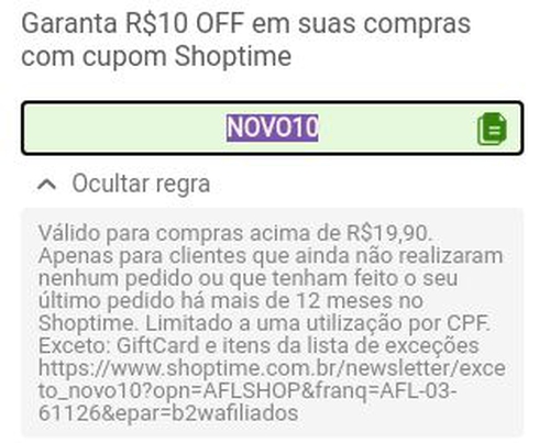 Testem os cupons GANHA10 BLACK10 NOVO10