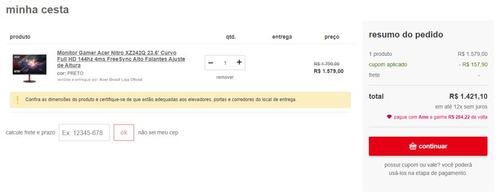 [AME R$1.137] Monitor Gamer Acer Nitro XZ242Q 23.6' Curvo Full HD 144hz 4ms | R$1.421