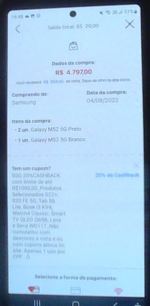 Gente, o meu não apareceu cashback. Entrei em contato com a Ame e eles disseram que esse celular não fazia parte da promoção.