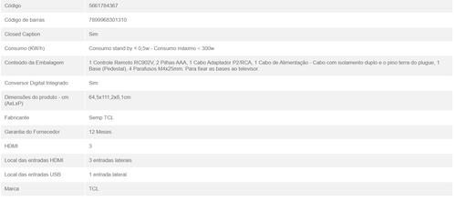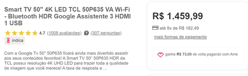 (Ame R$1.386,99) Smart TV 50" 4K LED TCL 50P635 VA Wi-Fi - Bluetooth HDR Google Assistente 3 HDMI 1 USB