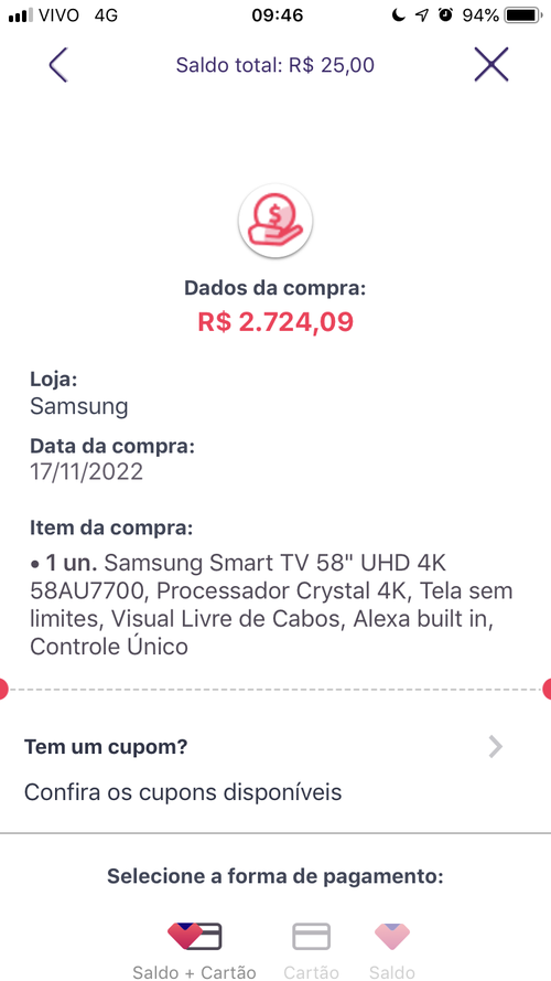 Tentei, mas o cashback já diminuiu 😭