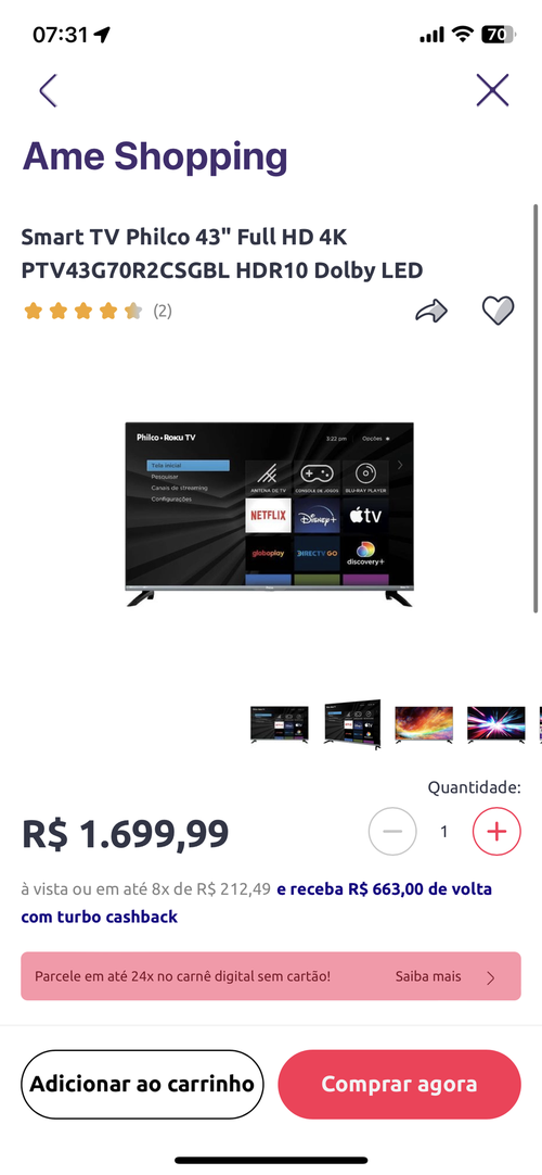Comprei, obrigado!!ótima tv.