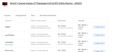 Acabei de pegar um Asus Tuf 27" 144hz por 1450, eu ia postar aqui mas só tinha 3 e acabou, não comprei esse da Multilaser por não ter furação Vesa, pra mim isso é importante, já que não tenho muito espaço na mesa.