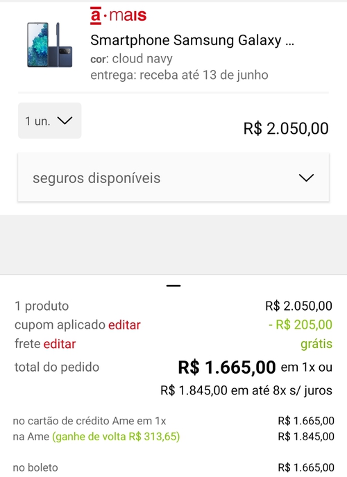 Deu certo. Usando o App ficou pelo preço de R$ 1382,00. Estava cogitando un S21 ou mesmo o S22. Mas o S20FE por esse preço... não resisti.
