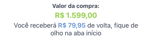 Na submarino já está ativo desde o dia 24 1599,00 com R$100,00 de cashback.