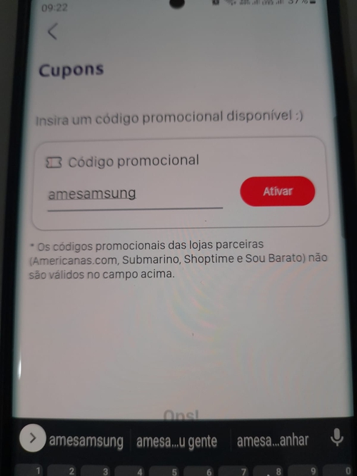 Cupom: AMESAMSUNG no APP Ame Digital PAGAMENTO POR LA
