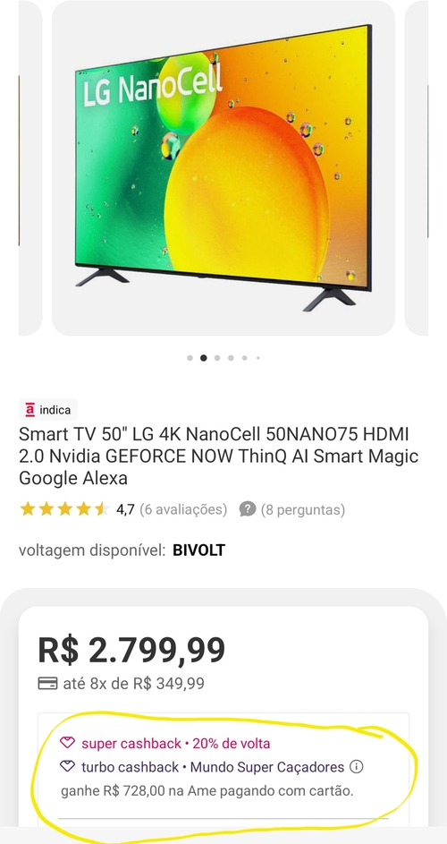 Comprei 🙂 aqui saiu com R$ 616,00 de cashback