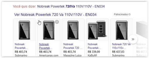 [AME R$ 249 ] Nobreak Powertek 720 Va 110V/110V - EN034 R$ 332