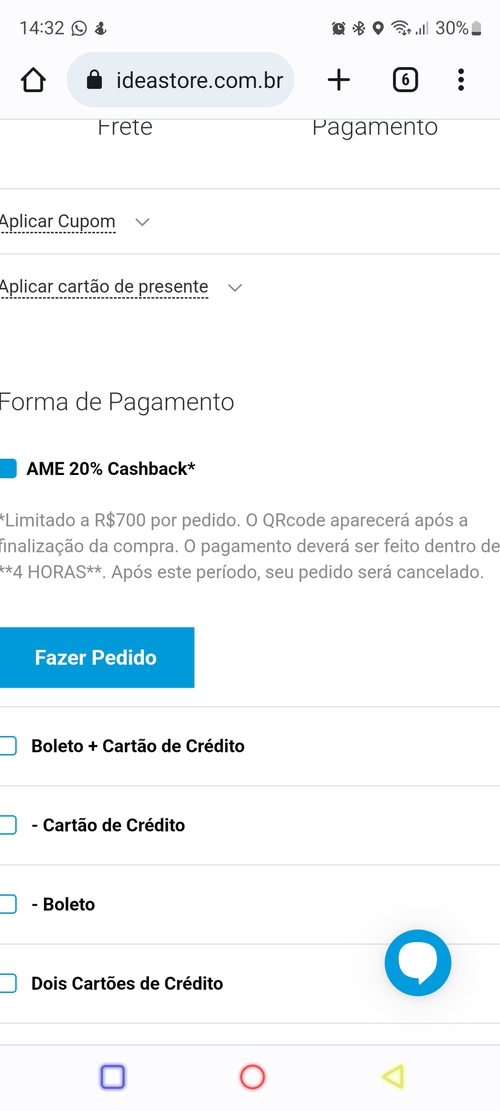 O cashback não é limitado a 700 reias?será que da para parcelar quando escolhe Ame ?