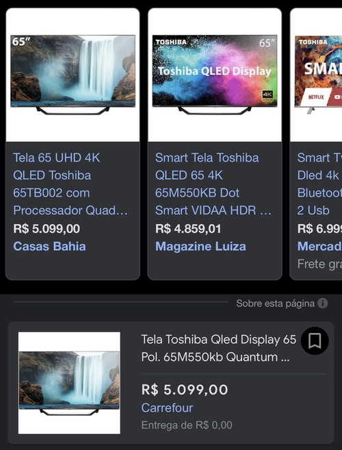 [Ame R$3.150] Smartv Toshiba QLED Display 65” 65M550KB Quantum 4K