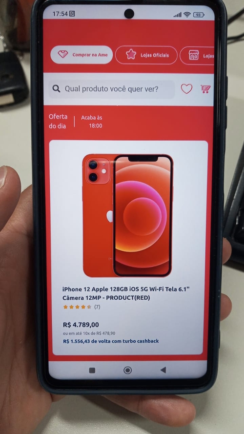 (AME R$3192) iPhone 12 Apple 64GB iOS 5G Wi-Fi Tela 6.1'' Câmera 12MP - PRODUCT(RED)