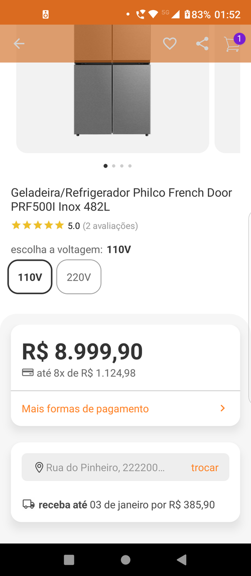 Aqui deu só 20 reais de frete. Mas só tem 110v