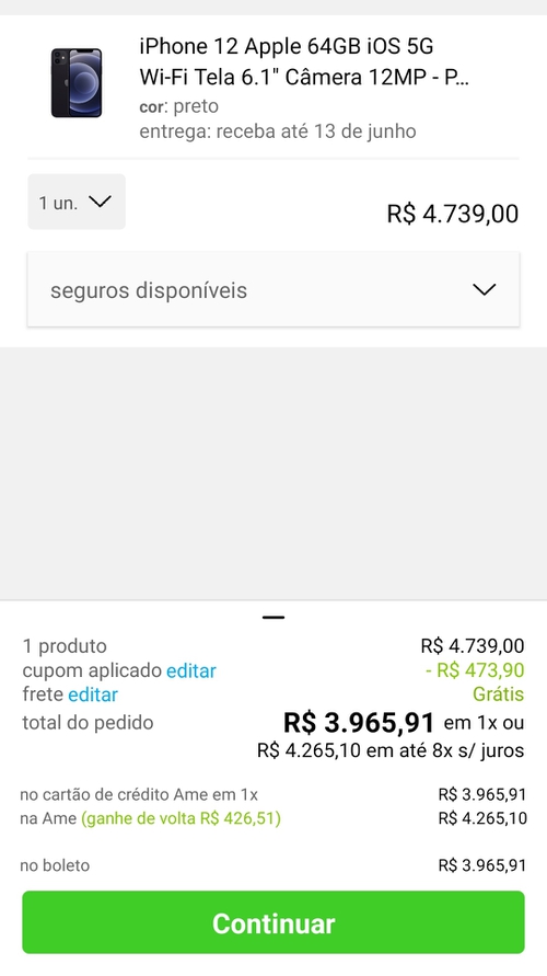 (AME R$ 3539,40) iPhone 12 Apple 64GB iOS 5G Wi-Fi Tela 6.1'' Câmera 12MP - Preto